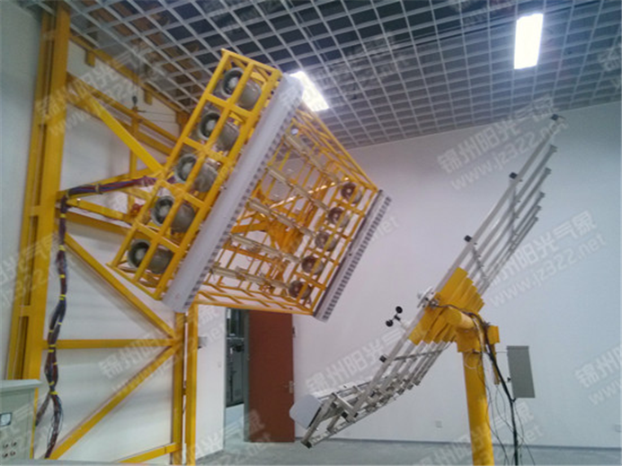 其中室內部分所提供的矩陣式人工太陽模擬器是我公司根據海爾要求設計生產的新型產品,相較于國內現有產品具有更廣泛的可調行及適用性。同時室內部分在太陽模擬下試驗時,系統全部用自動控制與攝像系統完成。光跟蹤傳感器可保證臺面與光源垂直照射。此外全自動旋轉控制臺可根據實驗需要,自動調整實驗臺面與光源指定的入射角度。