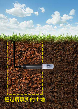 垂直挖直徑>20cm的坑,按照測量需要,在既定的深度將傳感器水平插入坑壁,將坑填埋嚴(yán)實(shí),穩(wěn)定一段時間后,即可進(jìn)行連續(xù)數(shù)天,數(shù)月乃至更長時間的測量和記錄。