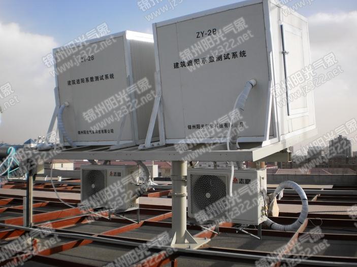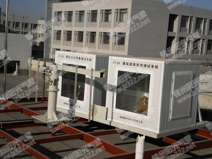 3、系統中的各重要組成部分的具體作用為:①環境溫度傳感器(含防輻射裝置):只測量室外空氣溫度和恒溫計量箱內環境溫度;②太陽輻射傳感器:一臺水平放置測量天空總輻射,一臺垂直放置于和測試窗平行的方向,測量窗系統接收到的總垂直太陽輻射照度;③自動跟蹤直接輻射傳感器:測量玻璃對入設角為0度的太陽直接輻射的透過率,吸收率;④8只溫度傳感器:分別測量計量箱內表面及窗玻璃的溫度;⑤8只熱流傳感器:測量計量箱內外表面及窗玻璃的熱流量;⑥風速風向傳感器:測量室外環境的風速風向;⑦電量傳感器:測量恒溫計量箱內控溫系統的用電量;⑧ZY-2B型遮陽系數測試儀:主機用于對各路傳感器信號進行采集,計算,存儲,顯示,組成包括遮陽系數測試系統數據采集器,數據管理微機,遮陽系數測試系統數據分析軟件。
