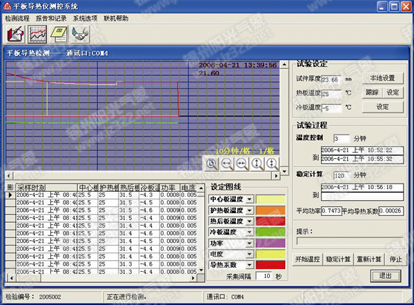 5、智能化的數據處理。高度自動化的計算機數據通訊和報告處理系統,平板導熱儀帶有計算機通訊接口,可以從計算機上設定熱板冷板控制溫度,實時顯示溫度實際曲線。