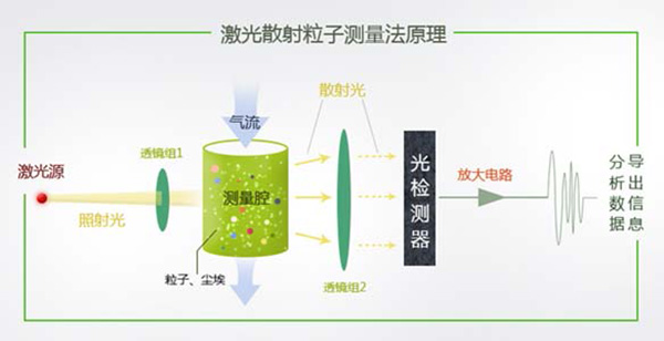 利用激光光束照射到含塵氣流上,使光束產生散射光,粉塵濃度越高,產生的散射光強度越大,由此測出粉塵濃度。光散射法測定公共場所空氣中可吸入顆粒物濃度,具有快速、靈敏、穩定性好、體積小、重量輕、無噪聲、操作簡便、安全可靠等優點。一方面該方法具有較 高靈敏度而需要的樣品量少,并可省去或者簡化樣品處理步驟,因此采樣時間和分析時間均可大大縮短;另一方面,該方法無需樣品儲存,從而避免或減少了分析方法中的各種可能的誤差因素。
