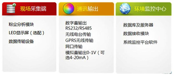功能特點:固定安裝,全天候連續監測多個粒徑顆粒物濃度