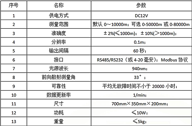 1、可對大氣能見度進行連續監測;