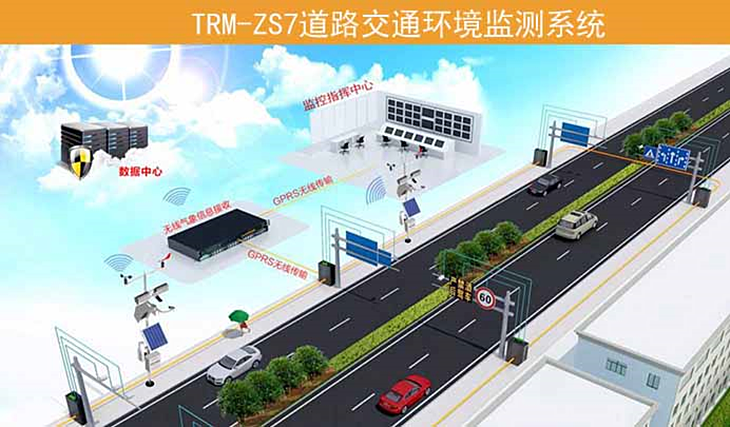 我公司研發生產的TRM-ZS7型道路交通自動氣象監測系統由分布在高速公路沿線的若干個高速公路自動氣象站聯網組成,對高速公路沿線的能見度、風向、風速、氣溫、濕度、雨量、路面狀況(表面溫度、干燥、潮、濕、雪、冰 、冰層厚度、積雪厚度、濕滑程度等)進行自動監測,并將監測信息及時傳送到監控中心,供交通管制系統參考,在惡劣或極端氣象條件下能及時發出警示信息,以多種方式告知管理人員和駕駛員,以提高高速公路的安全行車水平。