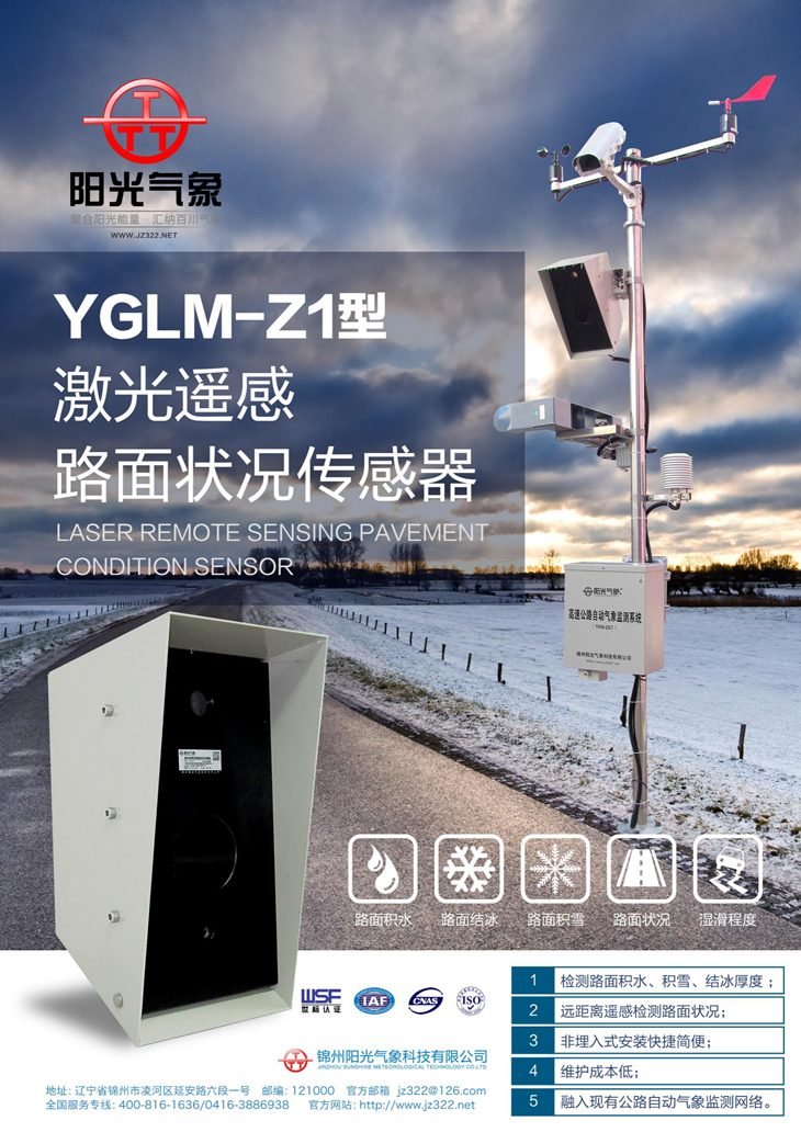 YGLM-Z1型激光遙感式路面狀況傳感器使用光學測量原理,這種遙感式的多功能傳感器系統不需要植入路面內,并且集成了微型處理器來識別道路和機場跑道的路面狀態。