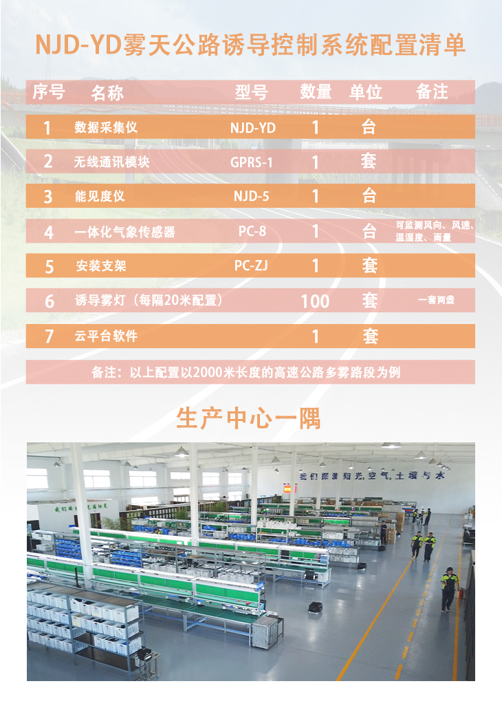 NJD-YD霧天公路誘導控制系統是陽光氣象公司針對霧天公路交通事故多發、行車困難等現狀提供的一套解決方案。