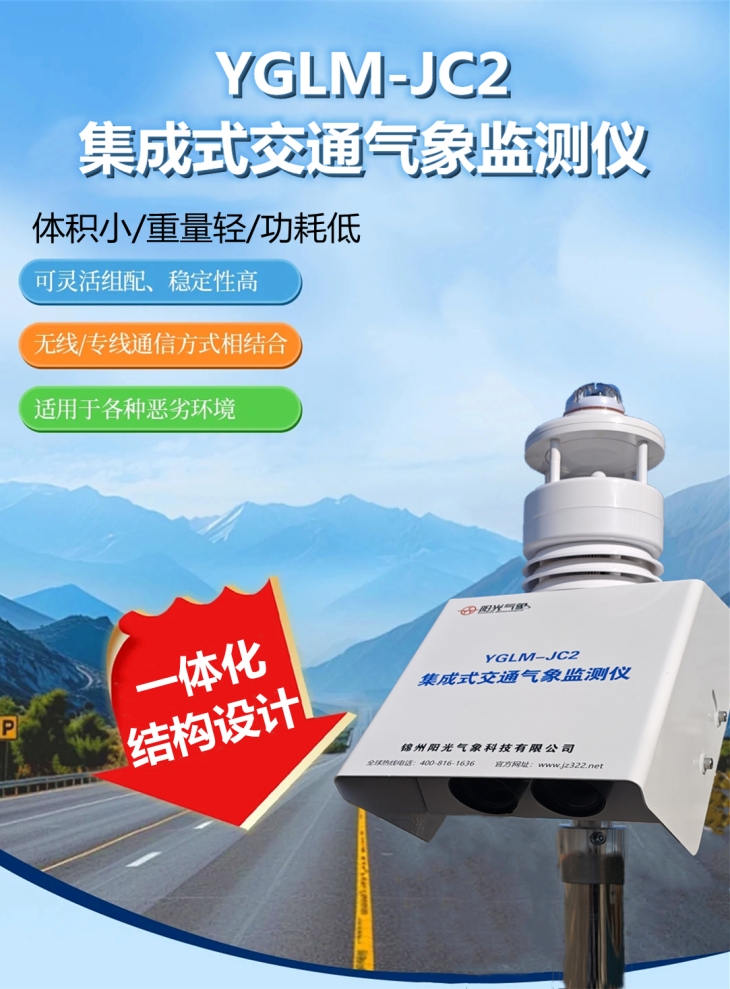 鑒于此我公司研發了YGLM-JC2型集成式交通氣象監測儀,它與傳統的交通氣象監測設備不同,集成式交通氣象監測儀既能滿足公路交通工程建設技術要求和規范標準,又可實現多要素傳感器及相關電氣部件的高度集成,內部各個傳感器組件能夠直接連接到一個微控制單元上,實現數據的采樣、處理和上傳。因此,監測能力更強,布設和維護成本也大幅降低。并把數據及時傳送給交通及氣象部門,為及時應對各種情況提供最可靠的監測信息和技術數據支撐。