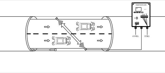 YG-JTDL15型隧道超聲波風速風向檢測器是特別為隧道內在線監測風速和風向而設計、制造的,采用超聲波時差法原理,將兩個超聲波探頭分別安裝在隧道內的兩側墻壁上,當隧道內氣流經過兩個超聲波探頭之間時,超聲波通過彼此發射波束往返的時間差從而得出隧道內的風速和風向值,由于采樣區橫跨整個隧道,所以檢測出的風速具有真實代表性。