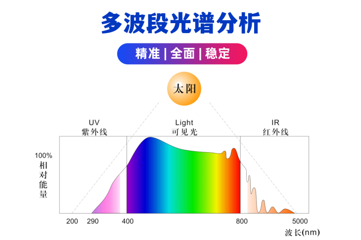 太陽總輻射、紫外光、綠光、紅橙光、紅外光、紫藍光、可見光、近紅外、遠紅外