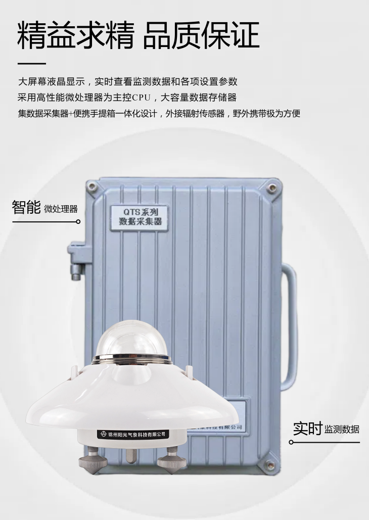 QTS-4全天候光輻數(shù)據(jù)自記儀是一款攜帶方便、操作簡單的便攜式太陽輻射記錄儀器。產(chǎn)品采用高性能微處理器為主控CPU和大容量數(shù)據(jù)存儲器,能對太陽輻射進行準確測量、顯示并存儲。外接太陽輻射傳感器即可對其進行實時數(shù)據(jù)測量,同時還可以讀取太陽輻射的間隔累計及日累計值。該套設(shè)備可在全天候室外環(huán)境下工作,工作時無需人工干預(yù),便攜式防水防震結(jié)構(gòu),低功耗環(huán)保節(jié)能模塊設(shè)計,檢測精度高,交直流雙供電電源可選配,內(nèi)置大容量可充電鋰電池,電池可連續(xù)工作15天以上,具有停電保護功能,電量不足時自動關(guān)機。另外可以選配專用氣象支架和太陽能供電系統(tǒng),滿足戶外固定位置長期無人值守觀測。使用配套的USB線纜和氣象站軟件即可將數(shù)據(jù)下載到電腦,方便用戶對氣象數(shù)據(jù)做進一步處理分析。本儀器可廣泛應(yīng)用于氣象、環(huán)保、機場、農(nóng)林、水文、軍事、倉儲、科學研究等領(lǐng)域。