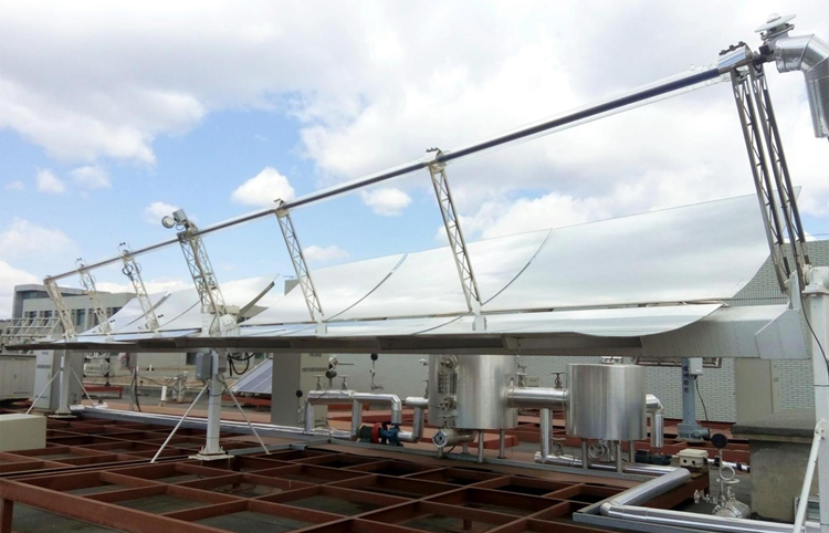 5、系統(tǒng)的支撐結構用于固定槽拋物面聚光鏡,并配合控制系統(tǒng)對集熱陣列進行一維跟蹤,以獲 得有效太陽輻射能;