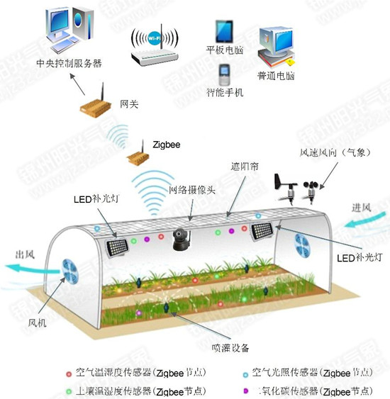 YG-SAC-SYS-01智慧農(nóng)業(yè)實訓系統(tǒng)以農(nóng)業(yè)大棚模型為載體,能夠?qū)τ绊戅r(nóng)作物生長的環(huán)境傳感數(shù)據(jù)實時監(jiān)測,同時根據(jù)環(huán)境參數(shù)閾值設置實現(xiàn)對現(xiàn)場電氣設備的自動化控制,如風扇、加濕器、除濕器、空調(diào)、照明設備、灌溉設備等,并支持遠程控制。常用環(huán)境監(jiān)測傳感器包括空氣溫濕度、土壤溫濕度、環(huán)境光照等傳感器。亦可支持無縫擴展無線傳感器節(jié)點,如大氣壓力、水位監(jiān)測、CO2、煙霧、紅外人體感應等傳感器。根據(jù)常見農(nóng)作物種植經(jīng)驗對系統(tǒng)關鍵值的設定進行判別,當某種數(shù)據(jù)偏離設定值時,大棚會自動做出反應(如溫度偏低時則打開供暖設施;溫度偏高時則開門通風;水量不足時則自動打開噴淋裝置等)。通過更加精細和動態(tài)的監(jiān)控方式對農(nóng)作物進行管理,更好地感知農(nóng)作物的生長環(huán)境,通過智能控制提高資源利用率和生產(chǎn)力水平。