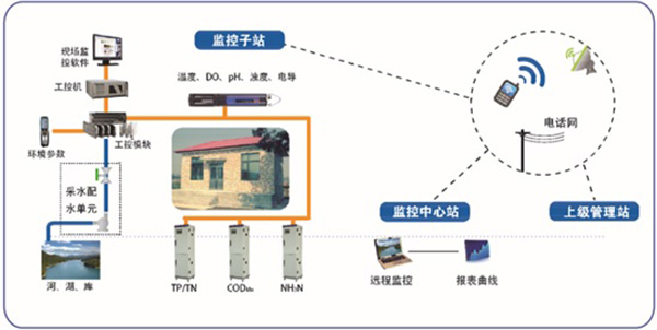 該系統主要由采配水單元、分析單元、子站控制與數據采集單元、等比例采樣器及條件保證系統等組成,對水質進行連續、穩定及準確的監測和遠程監控,能夠連續反映被測水質變化,隨時掌握水質變化情況、污染物含量,準確及時捕捉污染事故,對水質進行預報預警,為領導決策、現場管理提供實時的、全方位的輔助信息支撐。